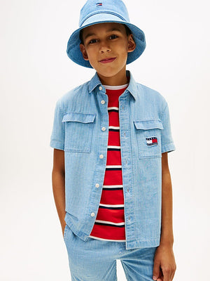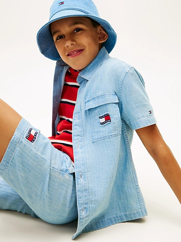 Denne bomullsskjorten er ideell for vår- og sommersesongen, og passer perfekt til hverdagens aktiviteter for barn og tenåringer. Kombiner med shorts for en lettere og mer luftig stil, eller bruk den åpen over en t-skjorte for et lag-på-lag-look.