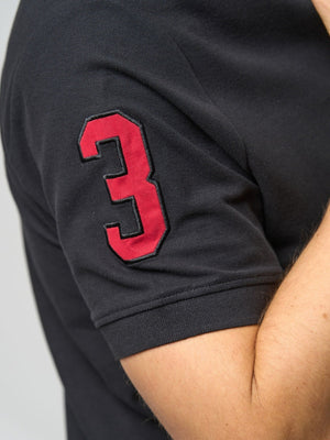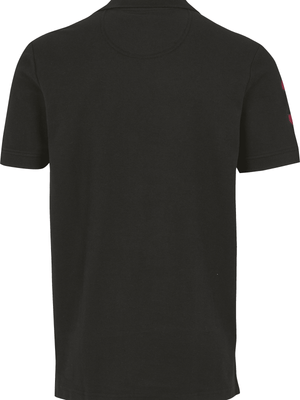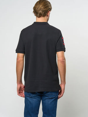 Alfredo polo i en klassisk svart farge er en stilig og allsidig t-skjorte for menn. Med en tradisjonell krage og knappelukking i fronten, har denne poloen et tidløst snitt som passer til både hverdagsbruk og mer formelle anledninger. Detaljene i rødt, inkludert logoen på brystet, gir en tøff kontrast til den svarte bakgrunnen, mens det kortermede designet gjør den behagelig i varmen.