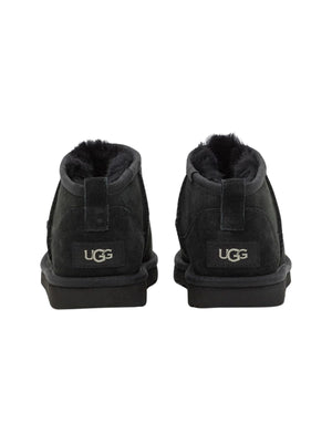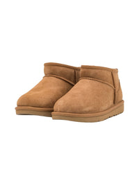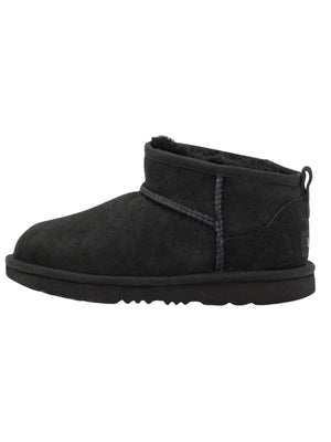 UGG Classic Ultra Mini er en lavere versjon av den klassiske UGG-støvelen – perfekt for barn som trenger enkel av- og påkledning og komfort hele dagen. Støvelen er forhåndsbehandlet med vannavstøtende finish og har alle kjente UGG-detaljer: ekte saueskinn, supermyk UGGplush™-innersåle og en lett og fleksibel yttersåle som tåler aktiv lek. Finnes også i voksenstørrelser for matchende mini-me øyeblikk.