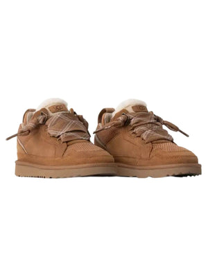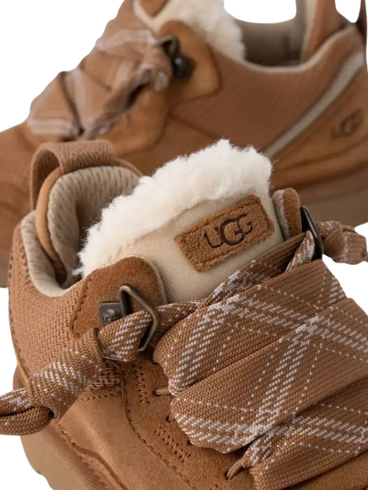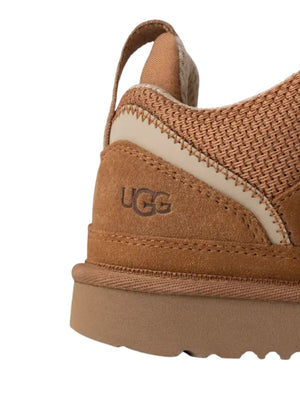UGG Lowmel for barn er en stilren sneaker med retroinspirert design fra vestkysten. De har store, runde lisser som er ment å bæres løst for en avslappet look. Skoen er laget med myke materialer som minner om klassiske joggesko, med semsket skinn og tekstil, samt netting foran for bedre pusteevne i varmt vær. Komforten ivaretas med støpt fotseng og en lett EVA-såle laget av sukkerrør. Matche med voksenversjonen for et koordinert familieantrekk!