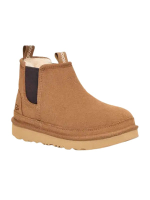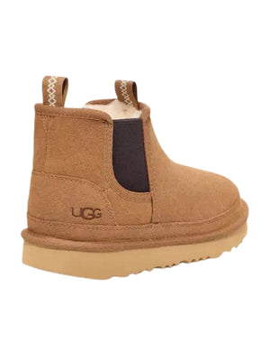 Denne barneversjonen av den ikoniske UGG Neumel har fått en slip-on-stil med elastiske Chelsea-paneler på sidene for enkel av- og påkledning. Den har fortsatt det myke og varme UGGplush™-fôret, og en lett og fleksibel såle laget av fornybart sukkerrør istedenfor petroleum. Perfekt for både innendørs og utendørs bruk – og matcher voksenversjonen for søte far-og-barn-øyeblikk.