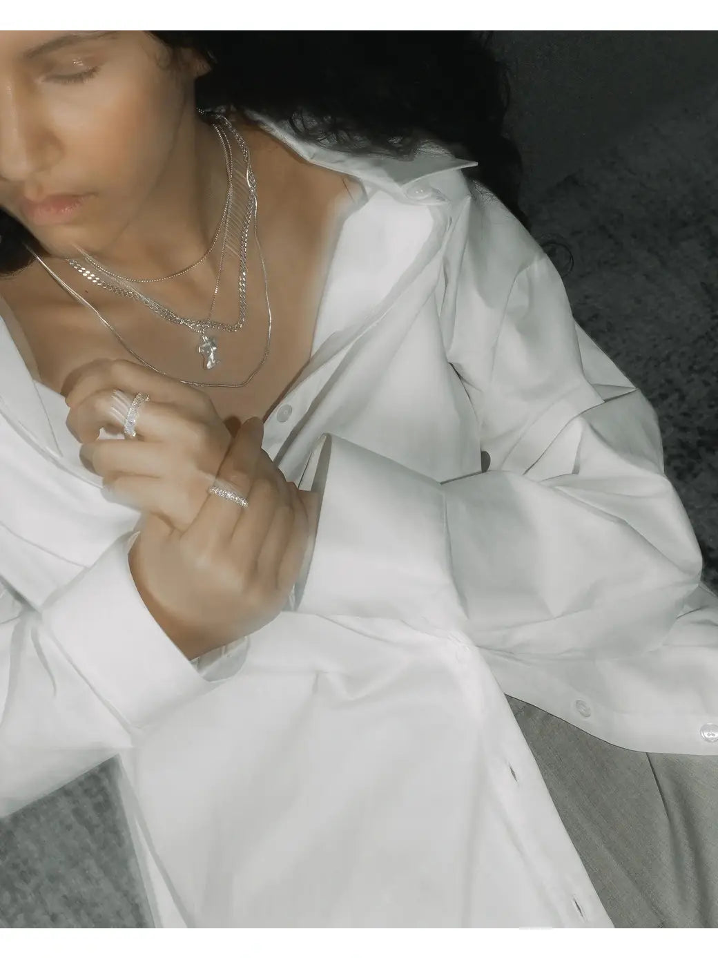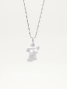 WHO IS SHE? Vi elsker henne, og vi bærer henne hver dag - kroppen vår. Vårt Figure Necklace i sølv kommer i en matt finish. "SHE" gravert på undersiden.