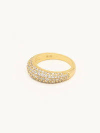 Ring fra WHO IS SHE i gullbelagt 925 sølv, med en topp dekket av skinnende hvite steiner.