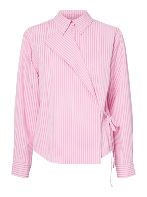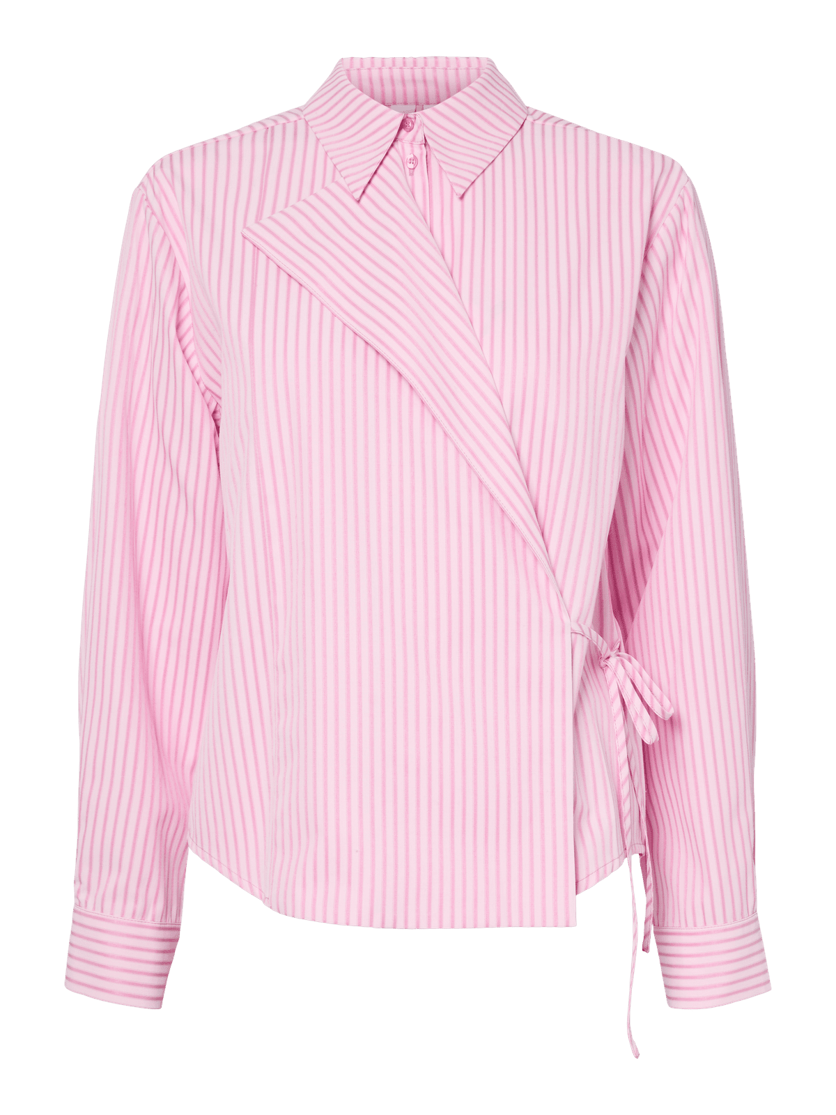 En klassisk skjorte med skjortekrage og lange ermer, avsluttet med mansjettknapper for et elegant preg. Knappelukking foran og bundet detalj gir stil og komfort.