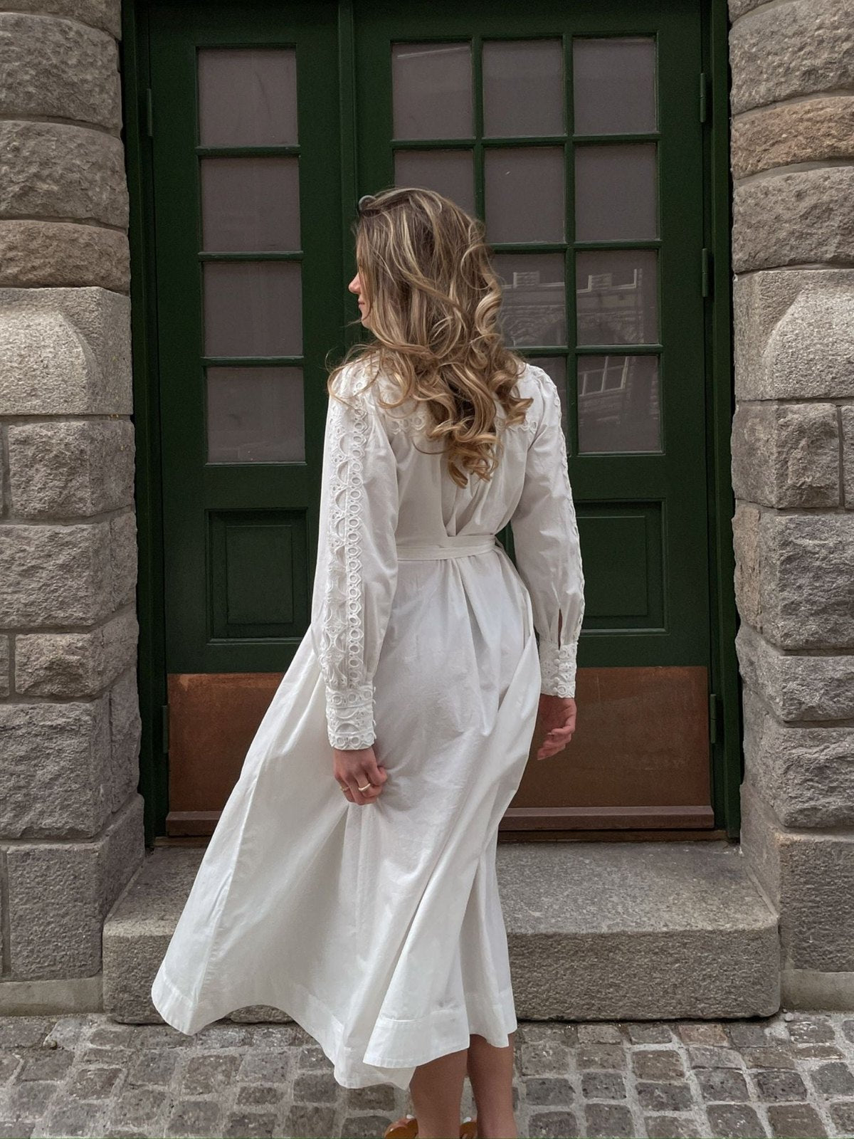 Se Yamina long skjorte kjole - star white stylet på Instagram